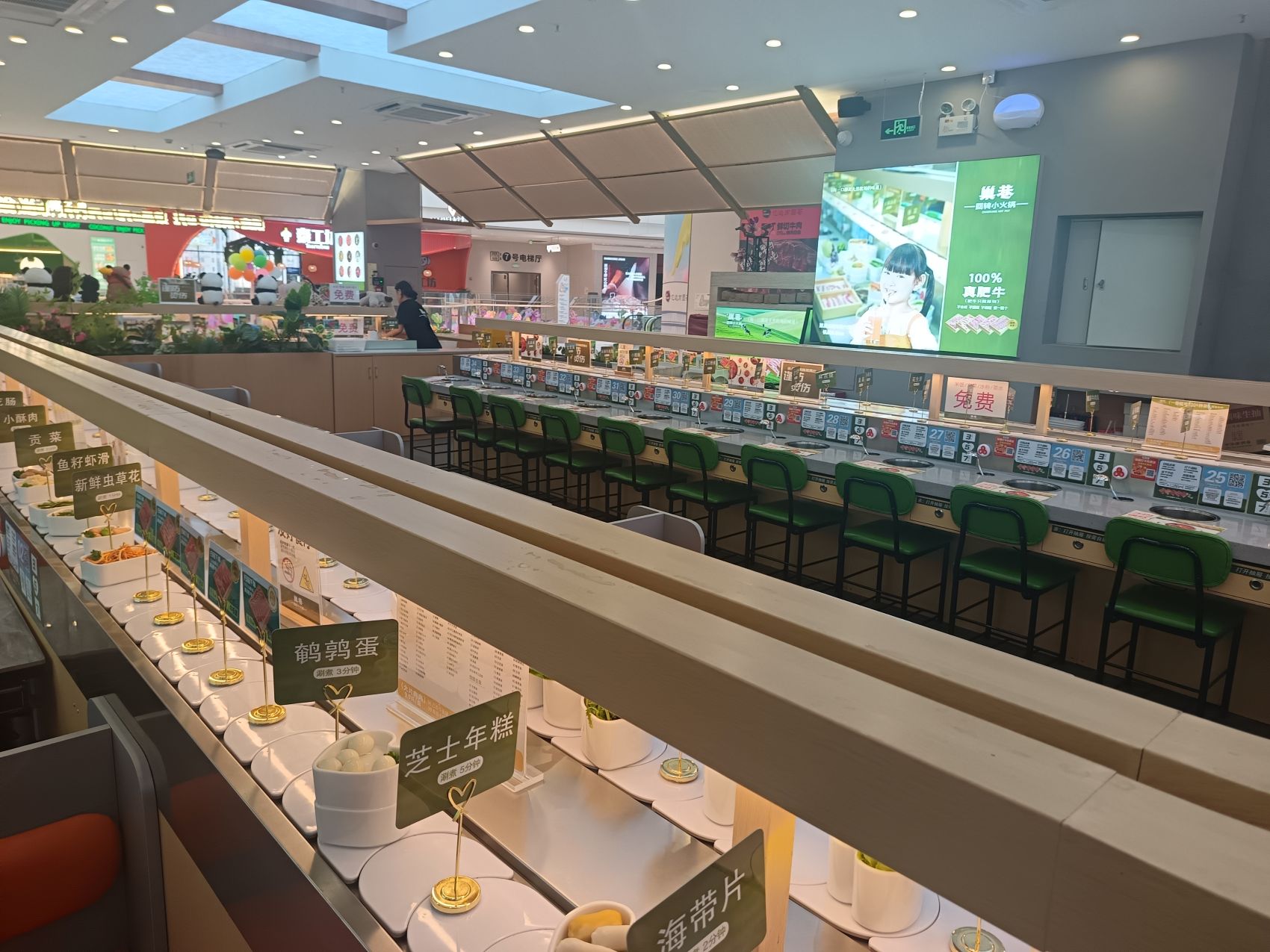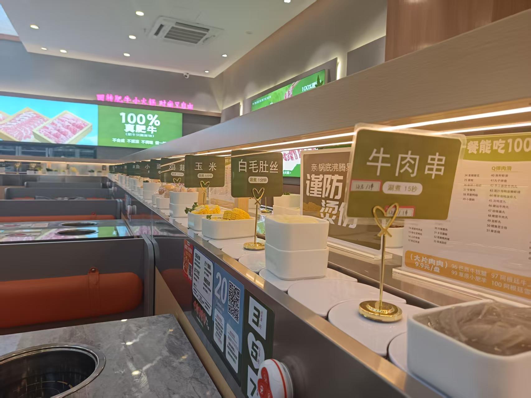 旋转设备采用的是亚克力白色链条 一边是四人卡座,另一边是单座,卡座方便聚会