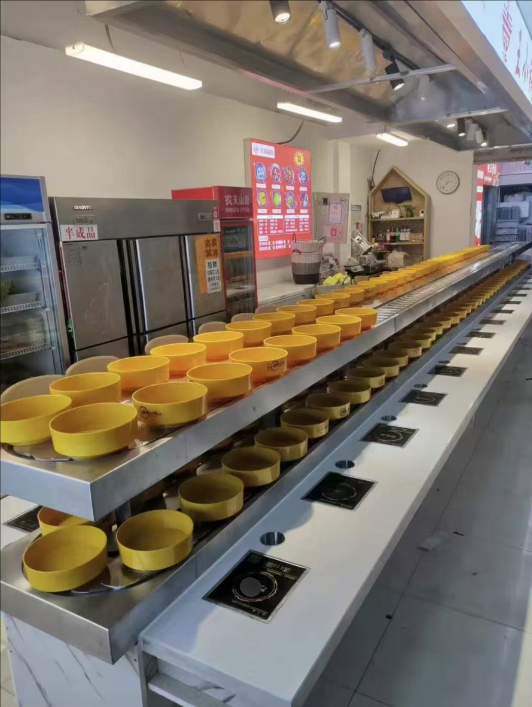 双层旋转设备既能放更多品类的食材又能满足消费者的选择为店铺吸引更多的顾客