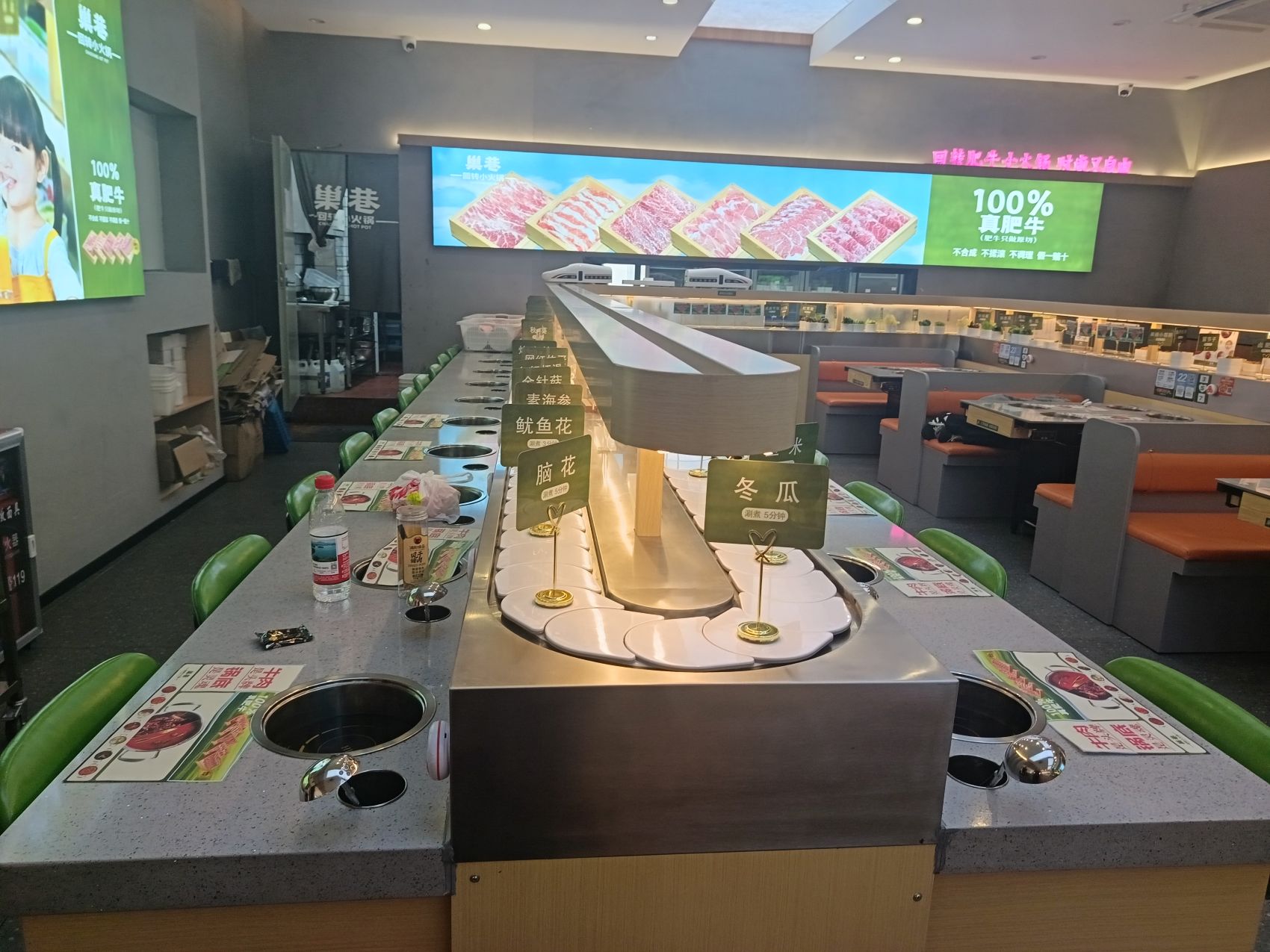 双层旋转小火锅智能送餐设备——上层轨道智能送餐系统 下层旋转小火锅设备