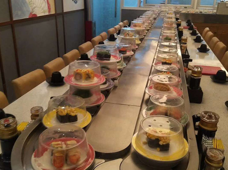 其中,不锈钢回转寿司拉带设备特点是:轻便、不生锈。与现代美观实用相结合,满足喜爱金属质感的消费客,颇受消费者青睐。