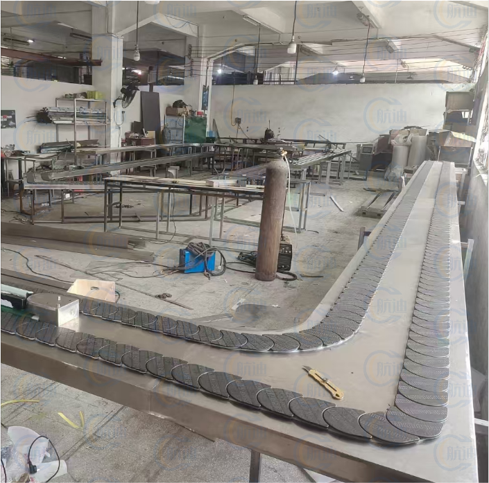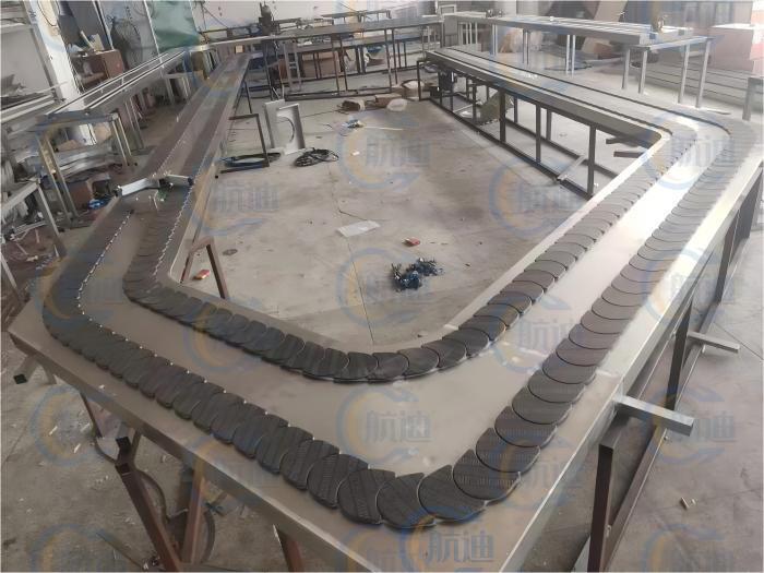 此系统适用于大型设备中,餐厅人多高峰时我们关闭过桥系统,所有菜品在整条流水线上送至客人