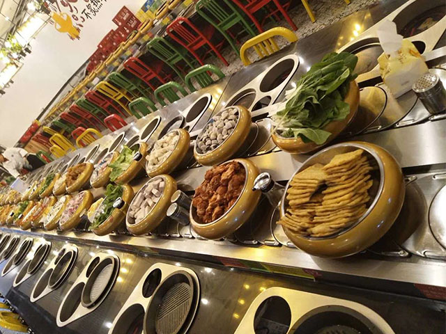 旋转小火锅设备最主要特色就是它会主动旋转或反转。这不仅仅让它更加的有趣,一起也会招引更多的客户。那么它的旋转或传送的原理是什么?咱们在这里就来简略的介绍一下。旋转设备的传送原理就是由发动机带动传送带,做到传送带的来回旋转,顺次替换的这样一个过程。每逢一盘菜或肉放在一个方位的时分,它都是要跟着传送带的传送,转到每一个人的面前,让每位顾客都能吃到自己想吃的食物。