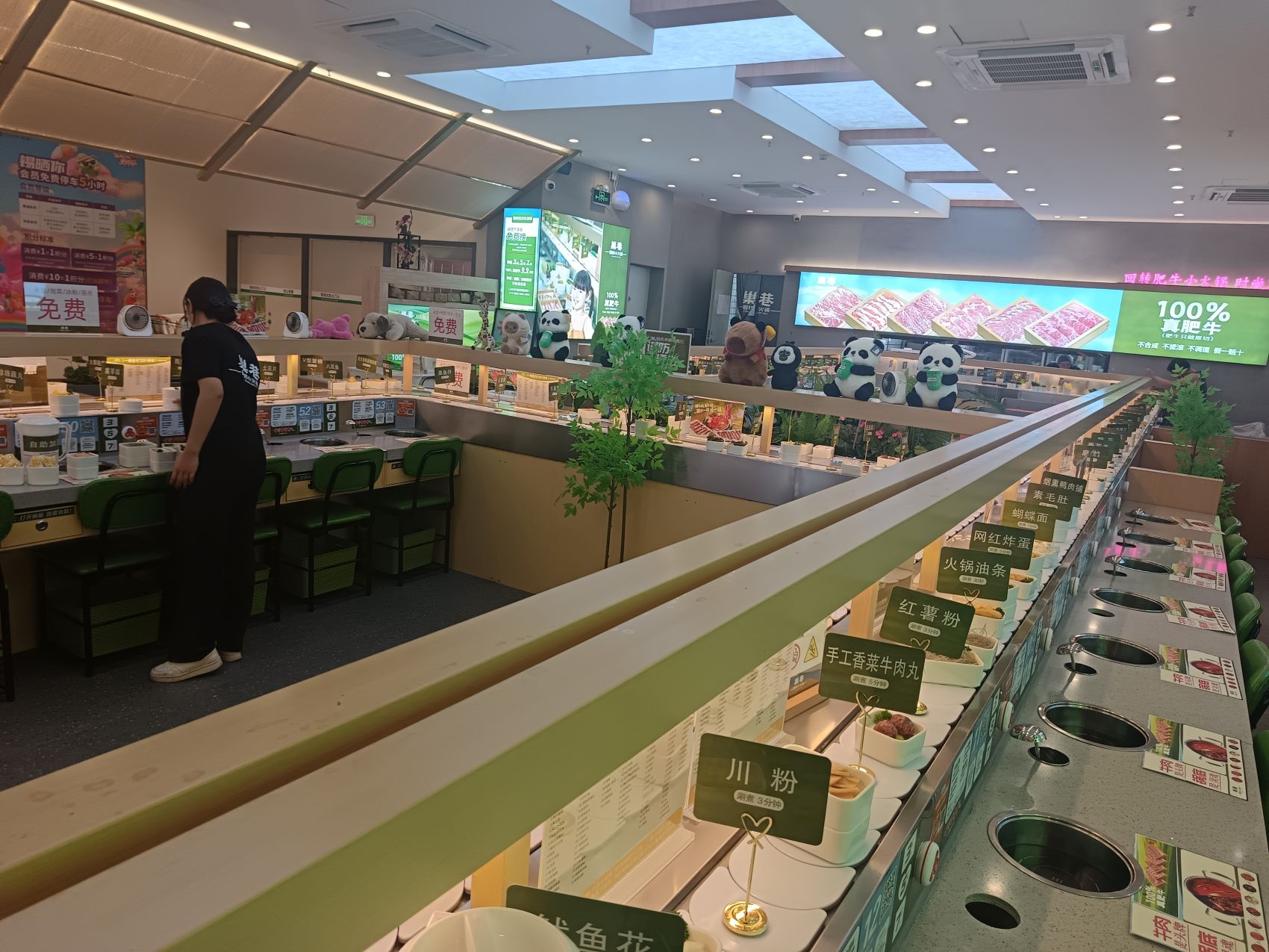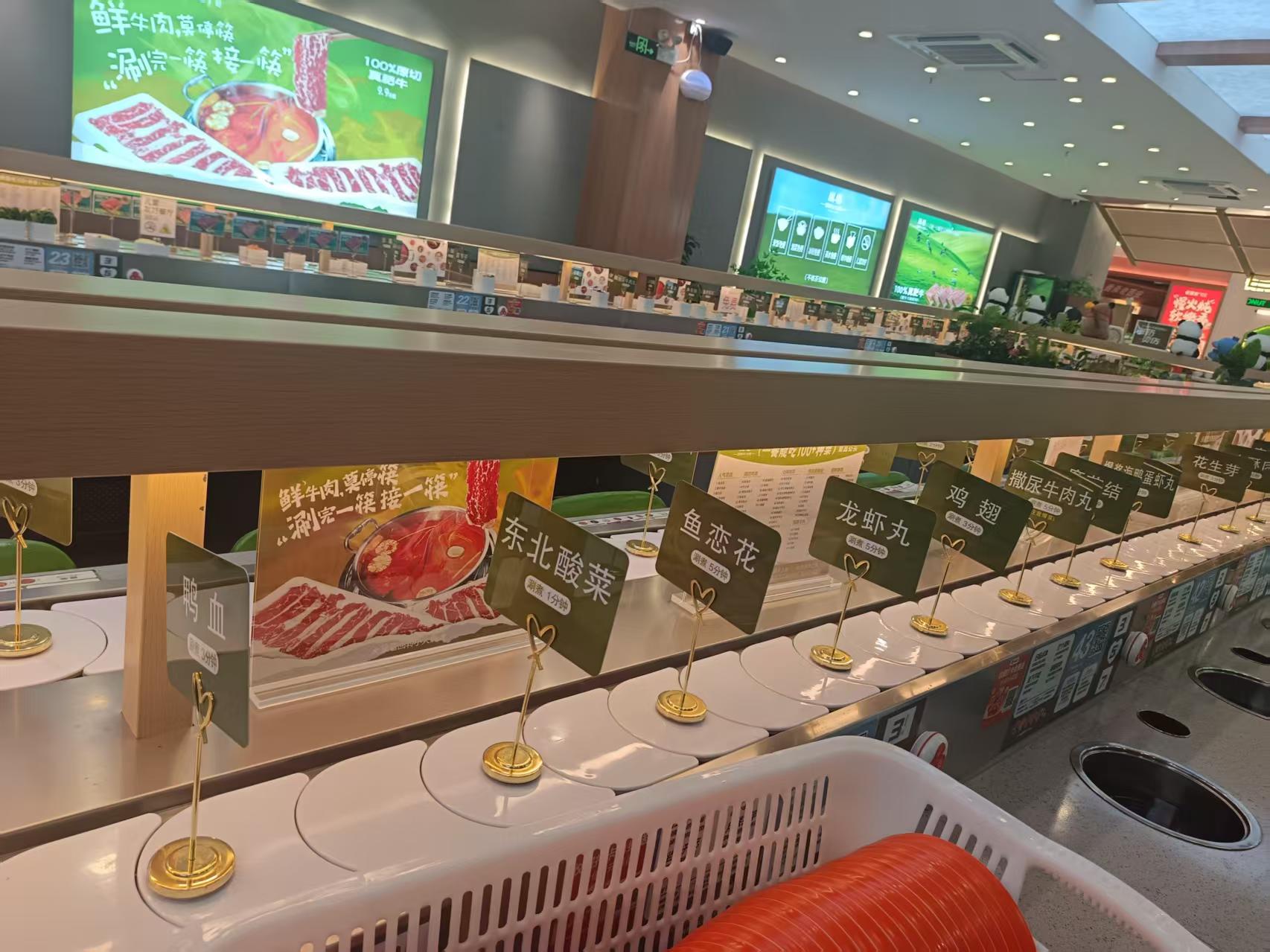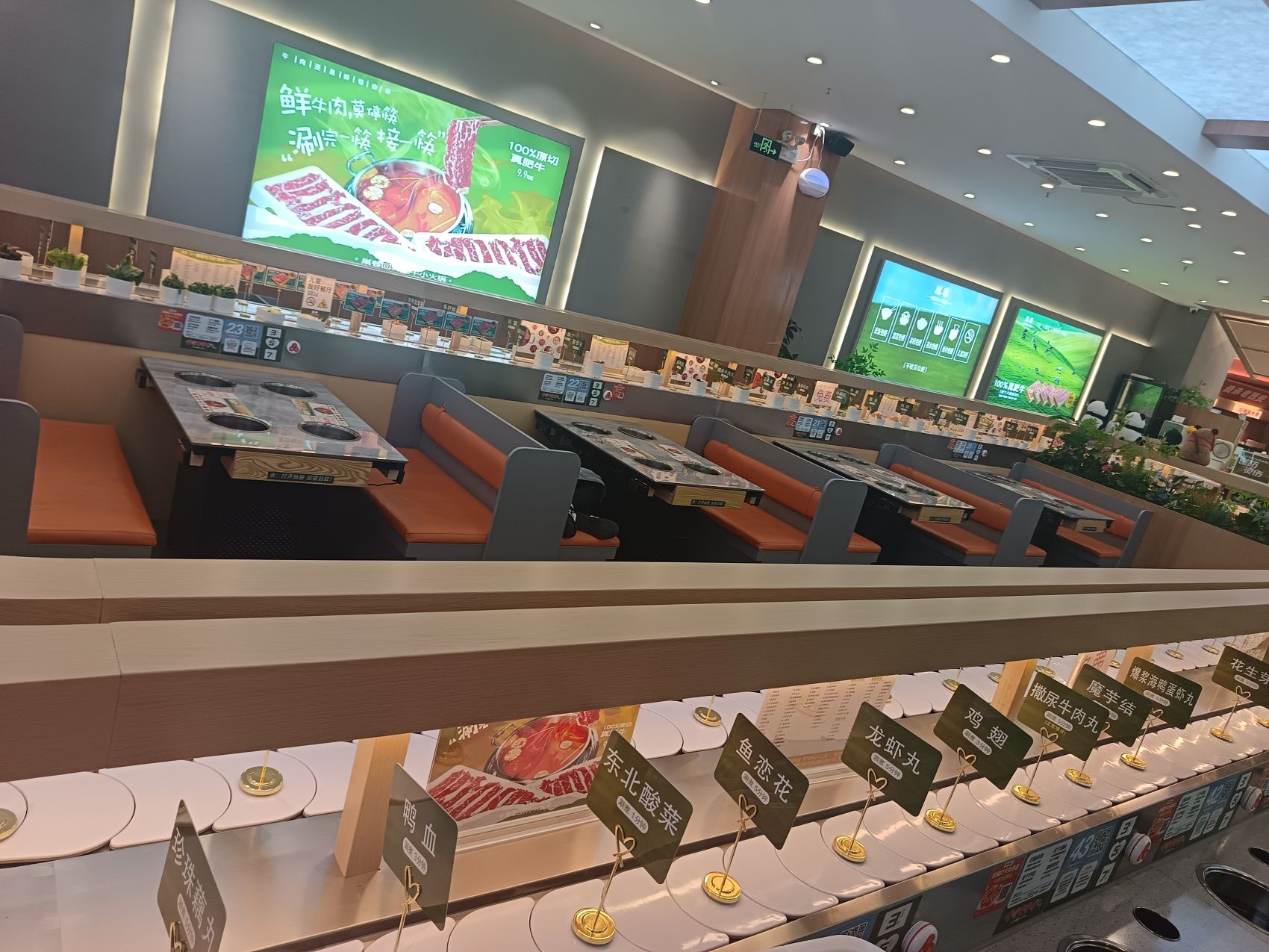 旋转设备采用的是亚克力白色链条 一边是四人卡座,另一边是单座,卡座方便聚会
