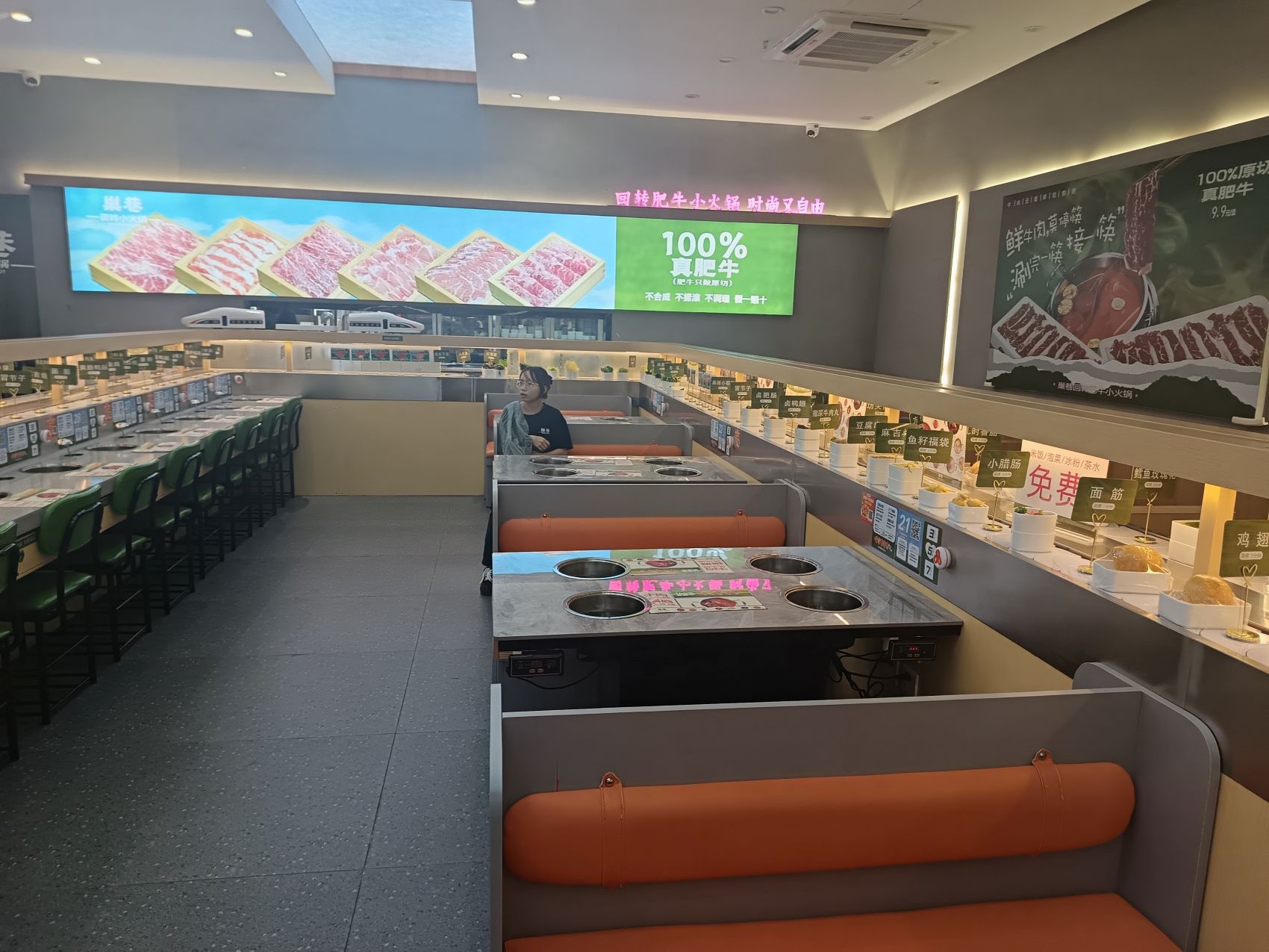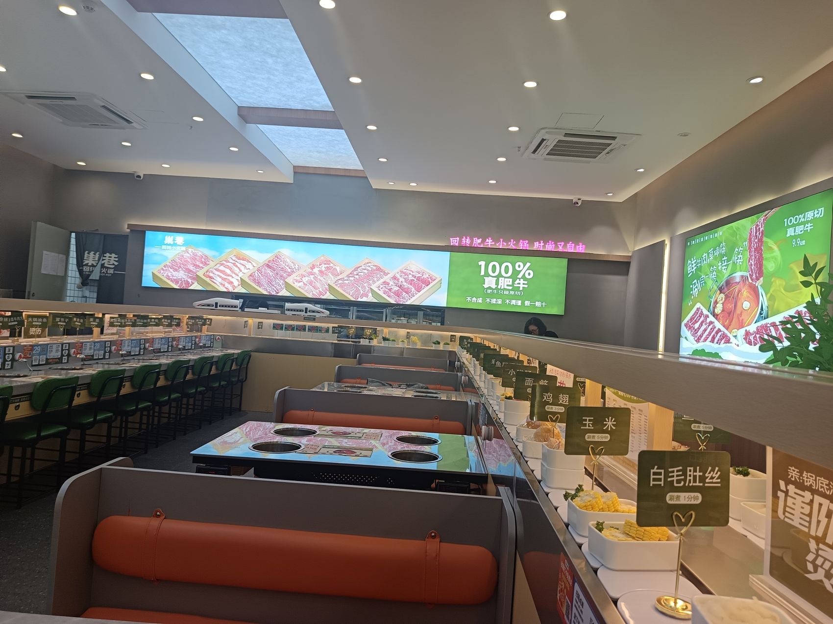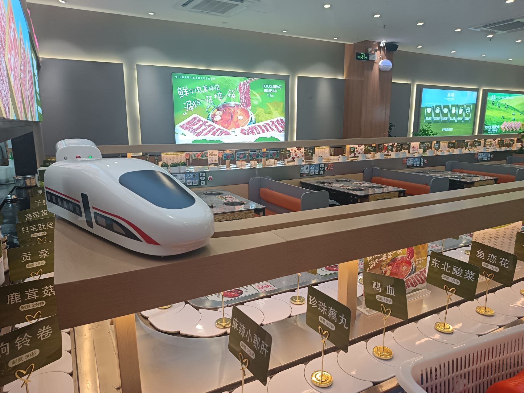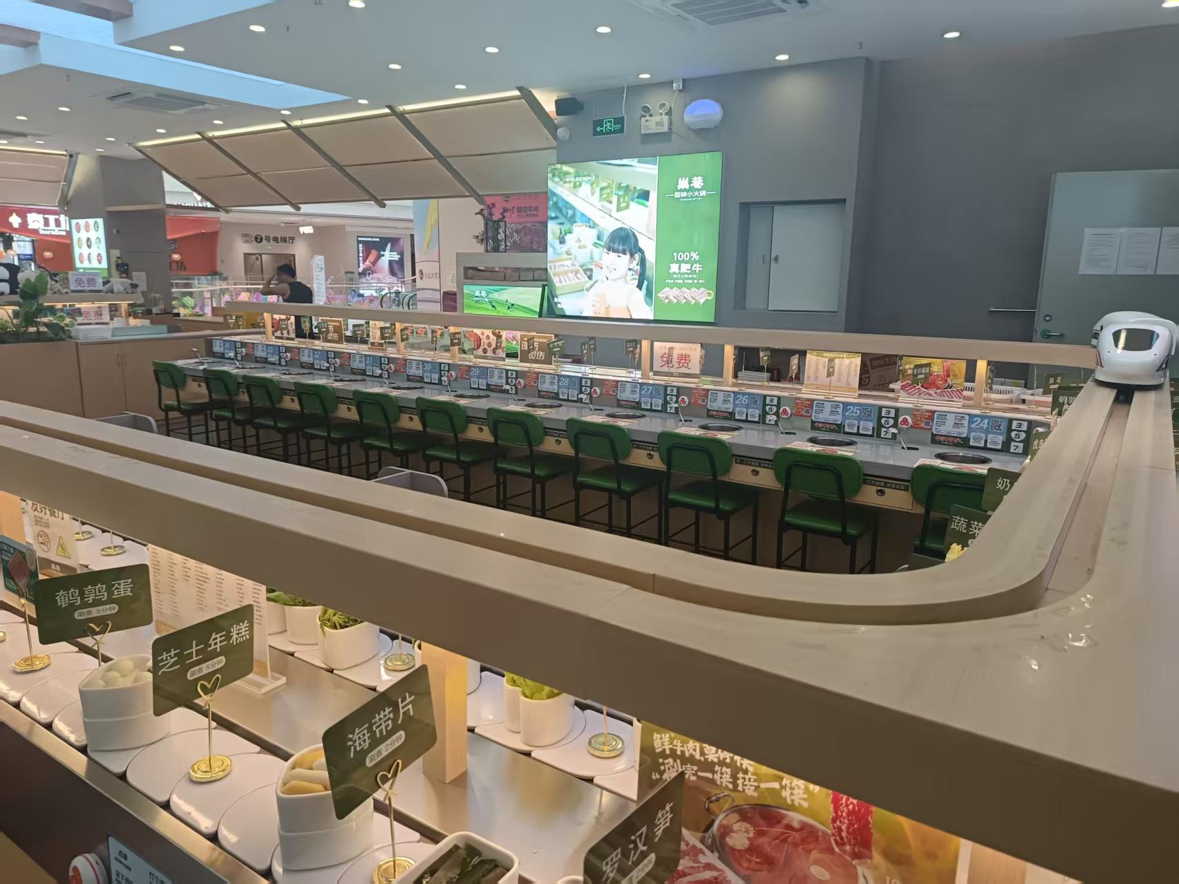 双层旋转小火锅智能送餐设备——上层轨道智能送餐系统 下层旋转小火锅设备